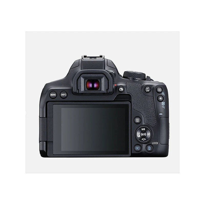 Cuenta con un visor óptico para ver a través del objetivo, un control trasero y un dial superior para modificar los ajustes, y un disparo continuo de 7 fps para capturar la acción. Con un sensor de 24,1 MP con Dual Pixel CMOS AF y un sensor AF refinado de 45 puntos tipo cruz, además de AF iTR para un enfoque y seguimiento precisos, la EOS 850D reaccionará al instante para capturar el momento perfecto. También puedes vincularla a un dispositivo inteligente para disfrutar del control remoto y editar fotografías en la cámara.