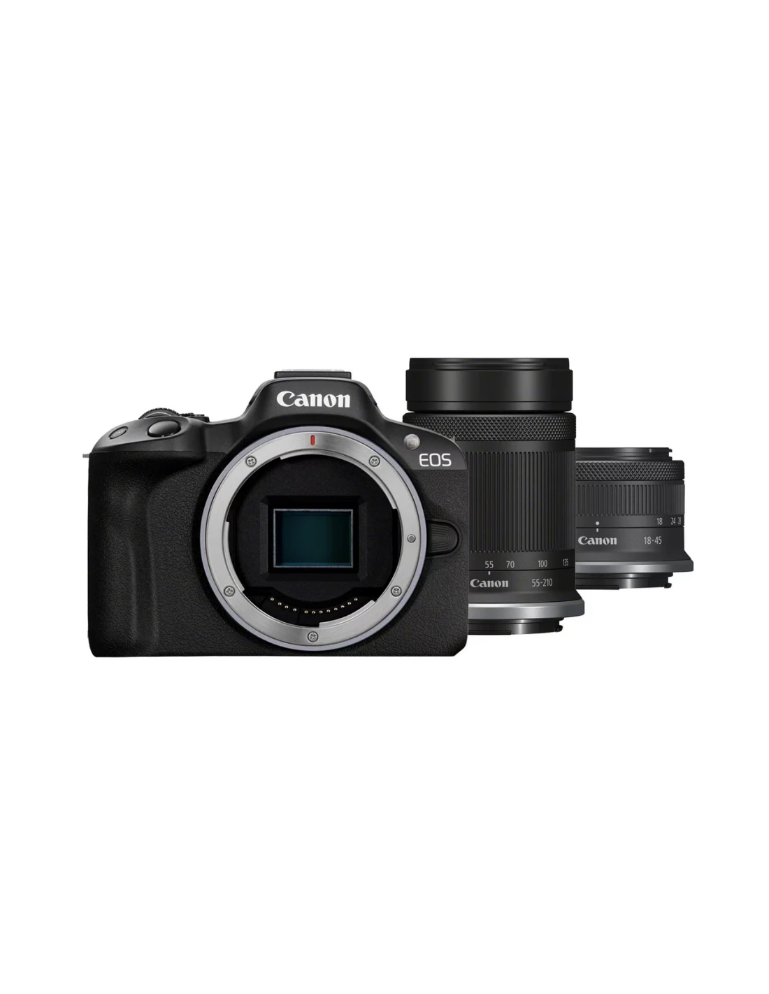 - Diseñada para creadores activos, la compacta y ligera cámara Canon EOS R50 cuenta con una pantalla táctil de ángulo variable, un visor electrónico y una empuñadura que se adapta de forma natural a la mano.