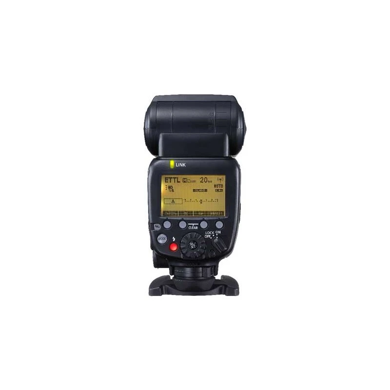 Un dial de control personalizable permite realizar ajustes rápidos al trabajar bajo presión, mientras que una gran pantalla iluminada muestra información de disparo relevante con un solo vistazo. El estado de la carga de todos los flashes inalámbricos del grupo se muestra en la pantalla de la unidad Speedlite 600EX II-RT maestra.