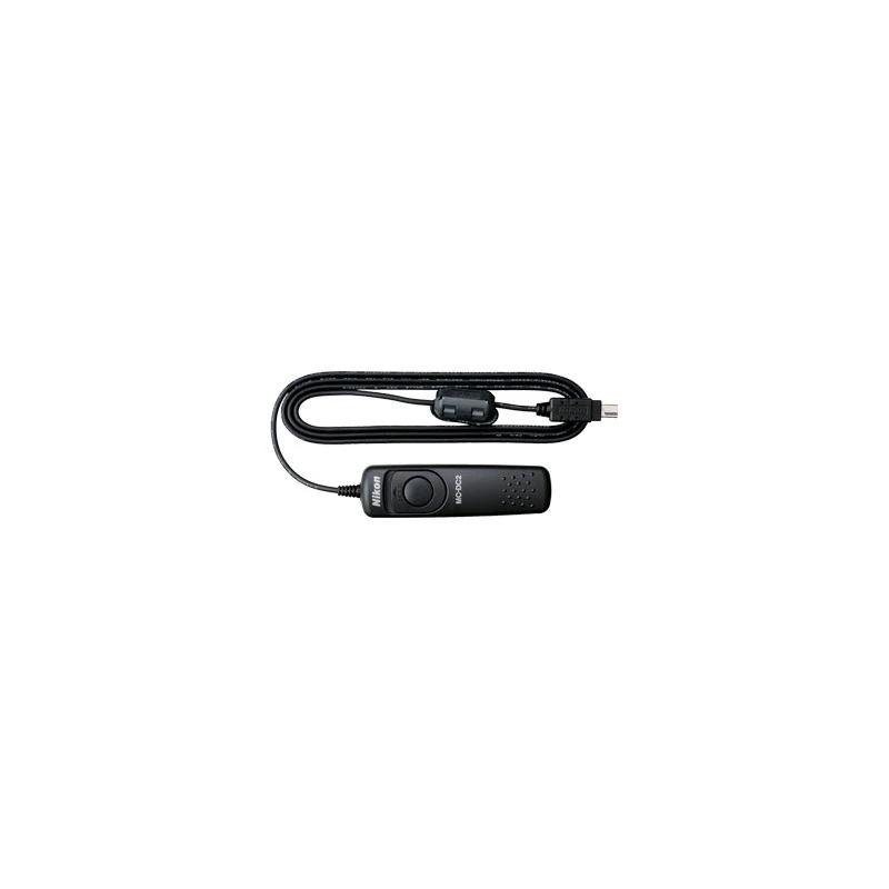 Cable de disparo remoto. Se enchufa en el terminal de accesorios de ciertas cámaras Nikon SLR y permite accionar el disparador sin entrar en contacto directo con el cuerpo de la cámara. Utilizar este cable puede ayudar a evitar que la cámara se mueva cuando se acciona el disparador con un trípode, y se puede utilizar para activar exposiciones de larga duración (bulb)