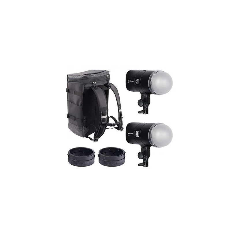 Incluye: 2x Elinchrom ONE, 2x Adaptador Elinchrom OCF, 2x Capuchón de Difusión Elinchrom OCF, 2x Elinchrom 65W USB-C Cargador de pared, 2x Cable ELINCHROM USB-C 1.8 m., 1x Elinchrom ONE Mochila