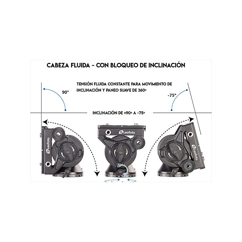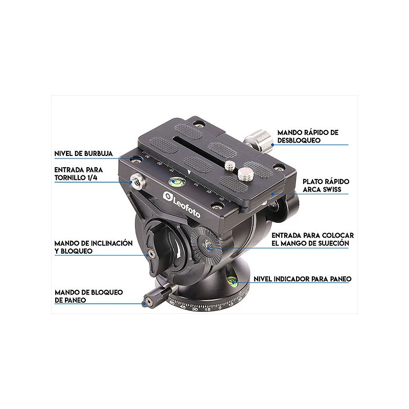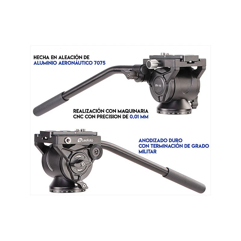 La cabeza fluida Leofoto BV-10 está pensada para video grabaciones o utilización en combinación de cámaras con teleobjetivos pesados (300mm, 400mm), telescopios terrestres. Permite tener movimientos y giros suaves y fluidos.
