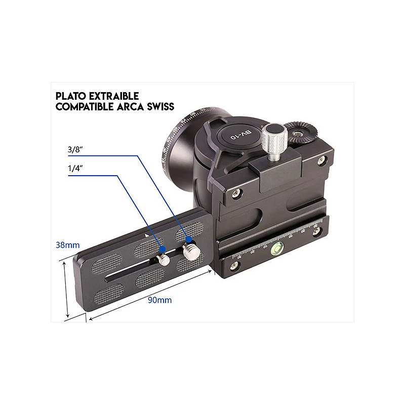 - Plato extraíble compatible Arca Swiss con salida tornillo 1/4 y 3/8