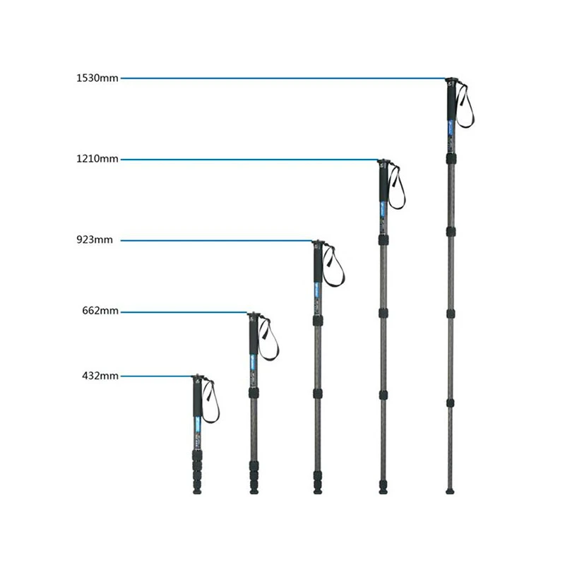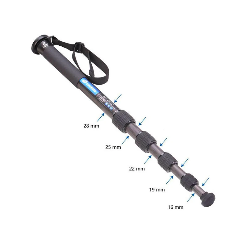 El monopie Leofoto MP-285C con altura máxima de 153 cm y 5 secciones hechas en carbono ligero de 10 capas Toray esta pensado para fotografía deportiva, naturaleza en combinación con teleobjetivos que preferiblemente tengan un collar giratorio.