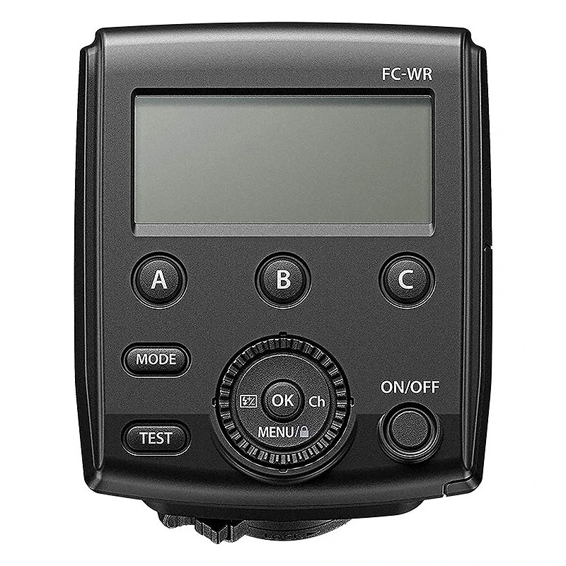 El FC-WR tiene botones independientes para los grupos A, B y C para que se puedan realizar rápidamente los ajustes para cada grupo, así como establecer el modo de disparo y la intensidad del flash mientras se ve por el monitor.