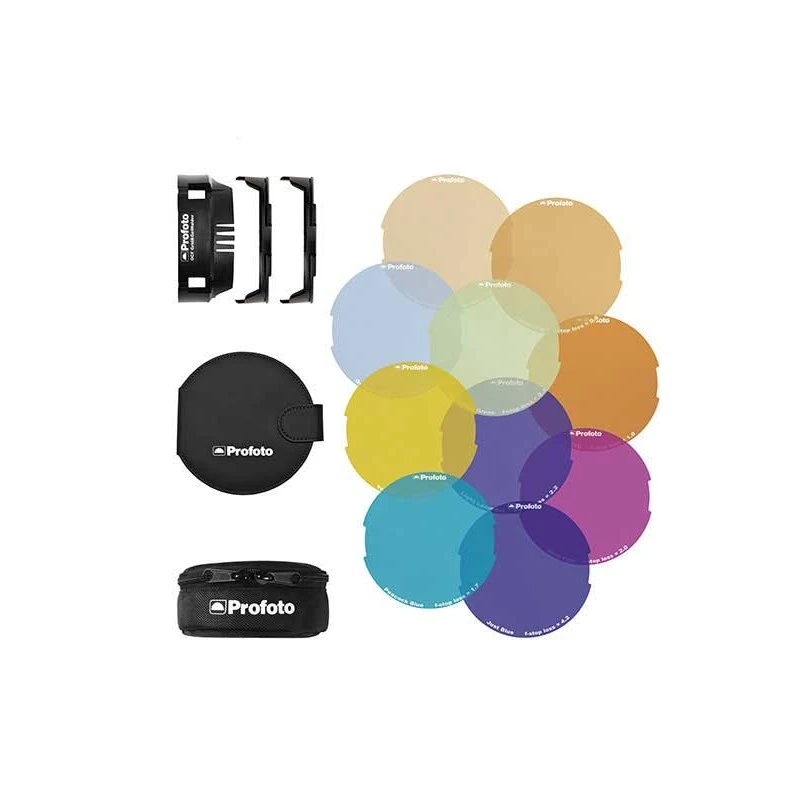 Los Filtros de Gel OCF están recortados para encajar en los Off-Camera Flashes de Profoto, montándose en un instante gracias a la inigualable solución de encaje a presión. Los OCF Gels se venden en tres kits diferentes. El OCF Color Gel Starter Kit incluye los diez filtros de gel más populares, además del soporte para Filtros de Gel. Además, hay un OCF Color Correction Gel Pack y un OCF Color Effects Pack, cada uno con 20 filtros de gel.