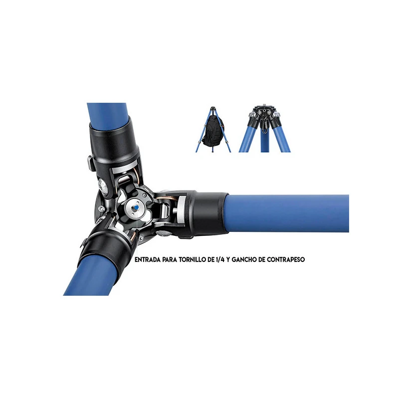 Entrada de tornillo lateral de 1/4 en el cuerpo del trípode para colocar accesorios como brazos articulados, monitores y similares.