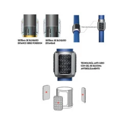 De forma adicional permite la colocación de otro tipo de pinchos en acero inoxidable largos TFS para terrenos de barro o arena, otros la opción de pinchos para terrenos de tierra dura, piedra.