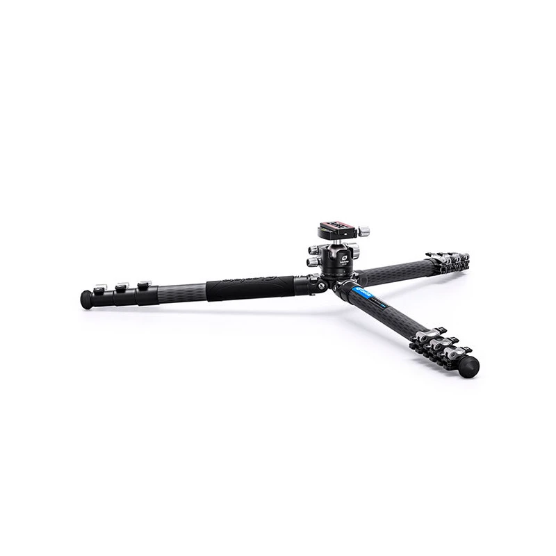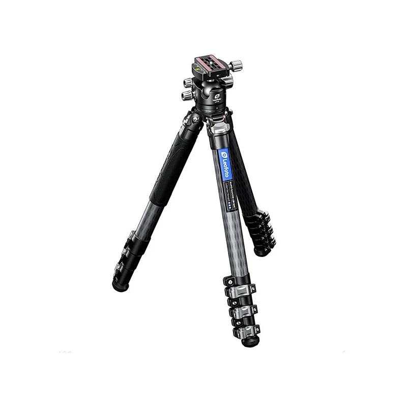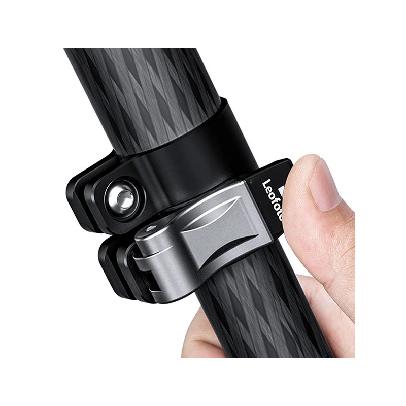 El trípode de carbono Leofoto LSR-324C + LH-40 tiene 4 secciones con bloqueo de secciones con pestañas en aluminio