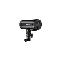Flash autónomo de 200 W de potencia capaz de utilizar su batería o bien conectarse a la red con velocidad de reciclado de menos de 1.3 segundos. Una carga de la batería proporciona más de 450 flashes a potencia máxima. Temperatura de color estable +/-150oK y duración del destello de hasta 1/20000s a t0.5 en modo Freeze. Frontal del reflector 70o (incluido) magnético para acoplar geles y otros accesorios