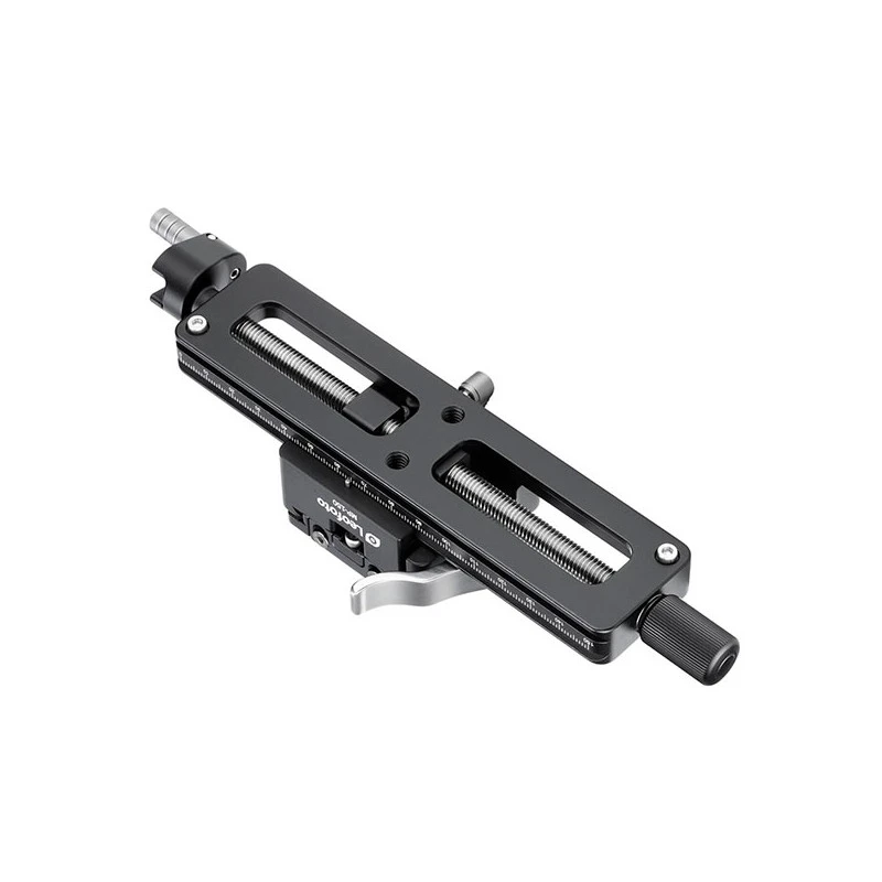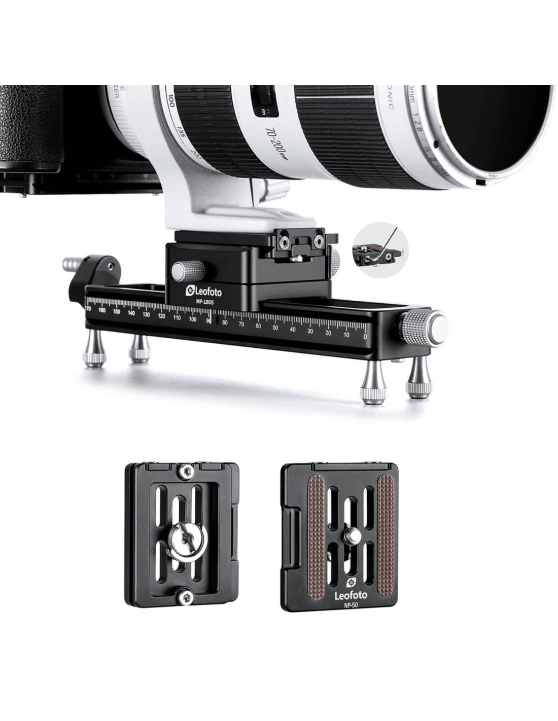 Este rail es válido para usarse con cualquier combinación de cámara y objetivo sea DSLR, compacta o Sin Espejo. Puede también combinarse con cualquier rail macro Leofoto MP-150S y MP-150