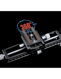 Zapata rail Macro MP-180s de Leofoto con zapata giratoria y patas extraibles. Posee un movimiento de precisión para la realización de fotografía macro con zapata Arca Swiss.